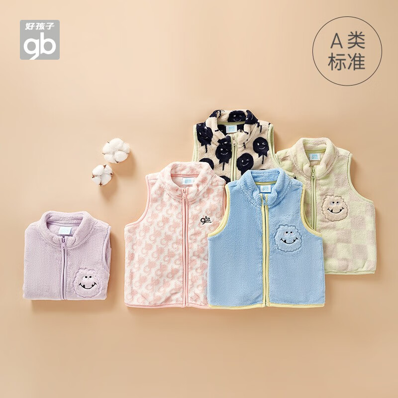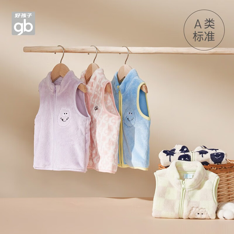 gb 好孩子 女童珊瑚绒马甲,手感柔软,绒感立体,质地细腻,无异味,穿着舒适放心,经典立领,简约有型,撞色包边工艺,装扮时尚童年,男女童同款,多色可选,近期好价。