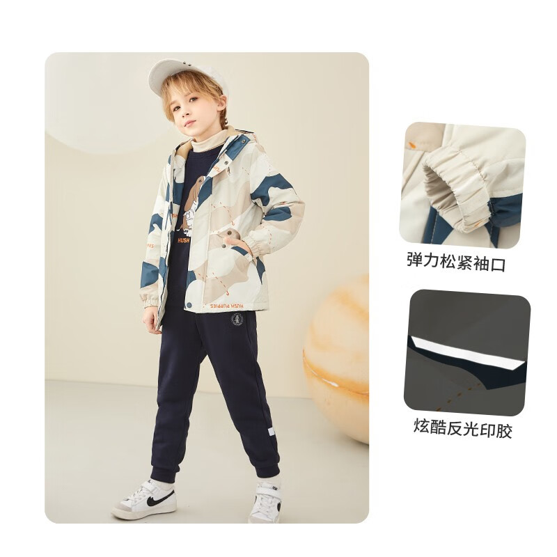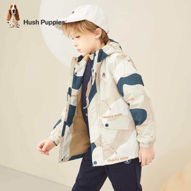 Hush Puppies 暇步士 儿童加绒风衣外套,采用舒适面料,柔软舒适,运动百搭,个性抢眼,透气性好,时尚帅气,潮流醒目,活力动感,休闲青春,居家外出,随心穿搭。