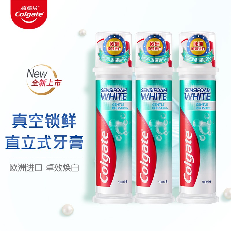 高露洁(Colgate)于1806年在美国成立。其推出的这款牙膏,内含美白粒子,帮助清洁口腔、清新口气的同时,祛除残留牙渍,令牙齿白皙莹亮,呵护牙周健康。泡沫丰富细腻,可深入齿缝,洁净口腔。产品采用真空按压包装设计,使用方便,干净卫生。