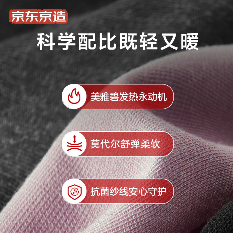 此款保暖内衣采用美雅碧发热,来自三菱的科技发热纱,最高升温5℃,适合5-15°的环境。AAA级抗菌,来自纱线的永久性抗菌,A类一等品品质,更高执行标准,柔软莫代尔,更舒适的穿着体感,抗静电抗起球,“双抗”品质,190g/m2的厚度,更好满足隐形打底和保暖的双重需求。