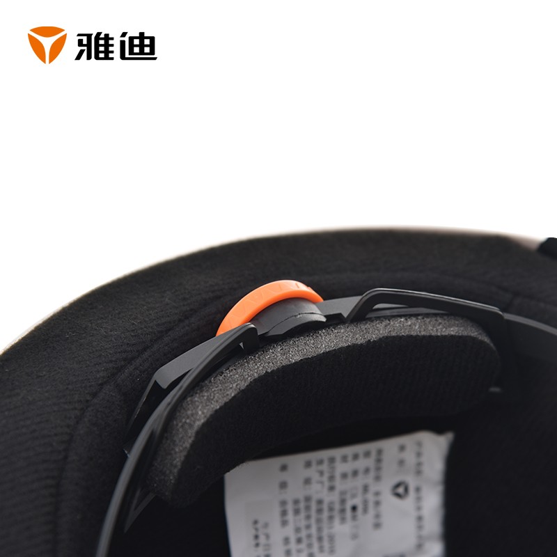 雅迪(Yadea)推出的这款骑行头盔,壳体选用ABS材质制成,密度高,承受能力强。EPS泡沫内层,可缓冲减震。头部四周采用前三孔后两孔设计,多方位促进空气流动。内置旋转调节器,可自由调节头围大小。尼龙拉绳配有简单插口,可紧密贴合下颚,不易脱落断裂。