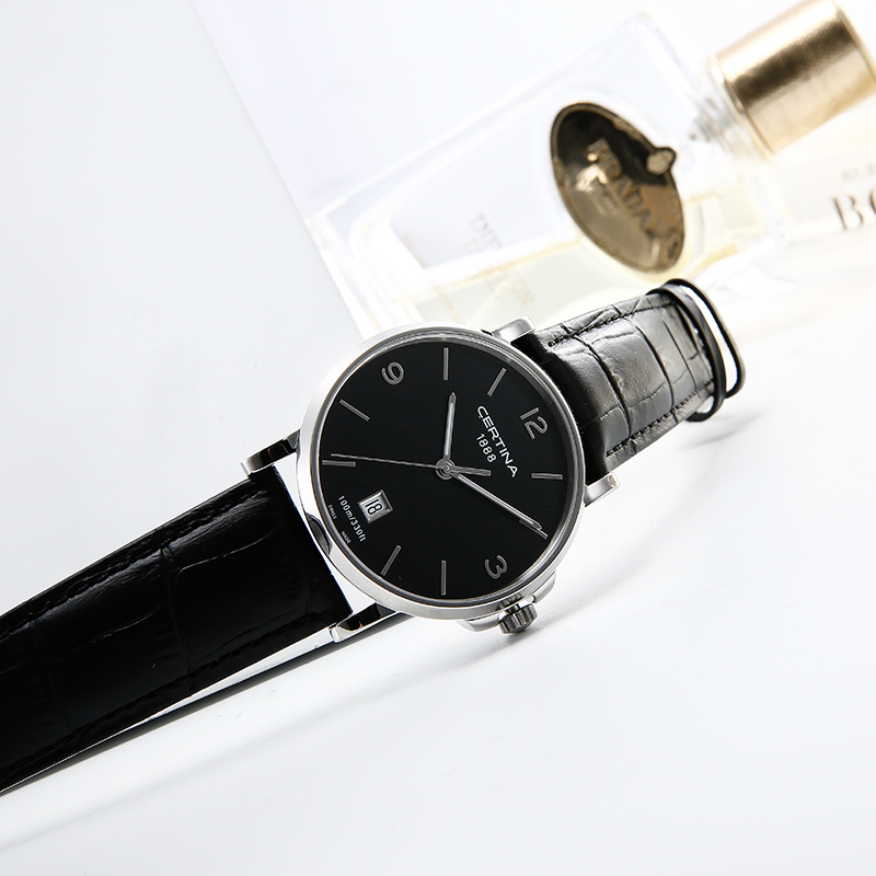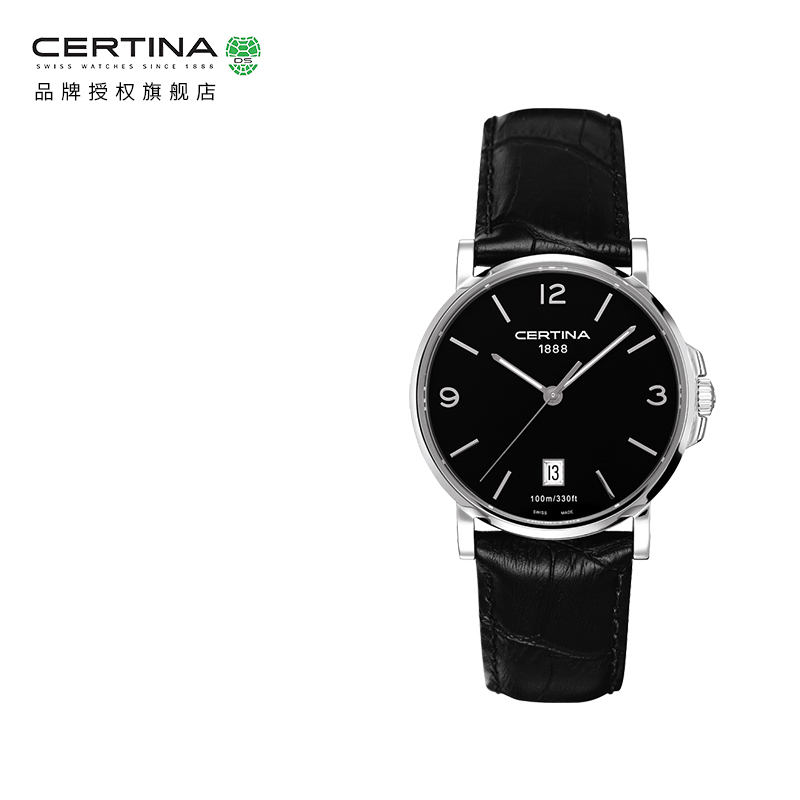 此款产品为CERTINA 雪铁纳 卡门系列 男士石英手表 C017.410.16.057.00,人工蓝宝石水晶玻璃北京,100米防水深度。表壳材质精钢,牛皮表带,ETA F06.111机芯。