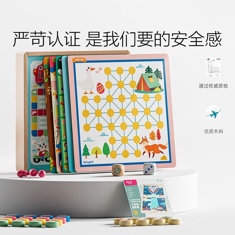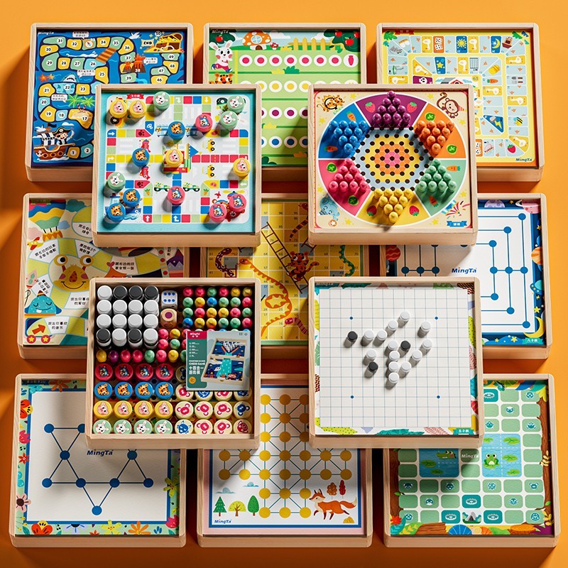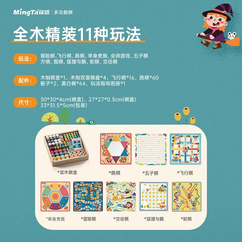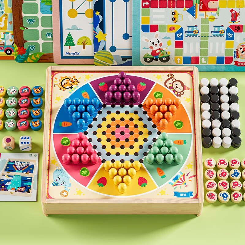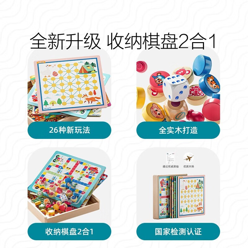 儿童棋类大全,24玩法合1,一盒装下24种儿童棋类玩法,亲子互动无烦恼;拒绝塑料,全实木打造,纯实木棋子,环保无异味,内附产品详细说明书,超多玩法,不怕不会玩。