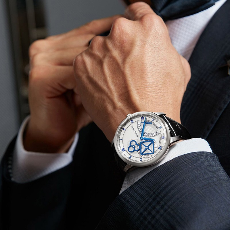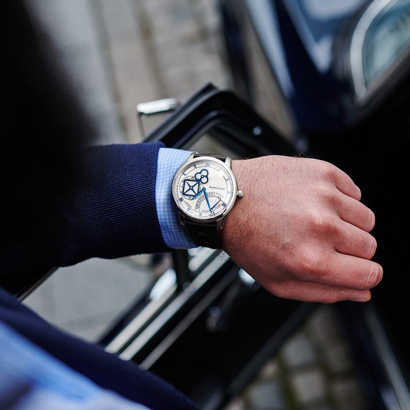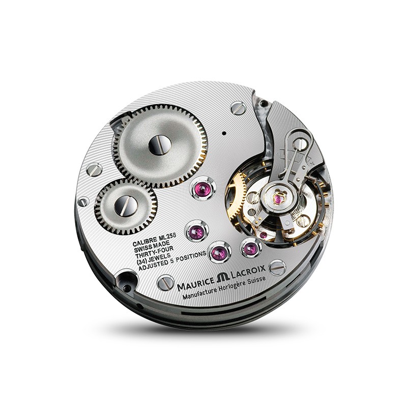 转动不息的艾美方轮,方形齿轮与三叶草齿轮啮合转动,呈现一种与众不同的全新美学理念,采用“逆跳”指针工艺,指针以弧形轨迹指向在到达最后一个显示值时就会跳回它的起点,屐现瞬间倒流的魅力所在,似乎让戴表者回味慢节奏的生活。