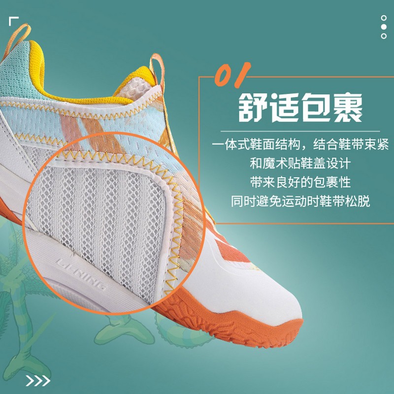 一体式鞋面结构,结合鞋带束紧,和魔术贴鞋盖设计,带来良好的包裹性,同时避免运动时鞋带松脱。内腰设有贴膜和耐磨垫片,加强包裹和耐磨性能,更加耐穿。实色橡胶大底结合变色龙,趾爪吸盘的仿生底纹,抓地强劲有力。