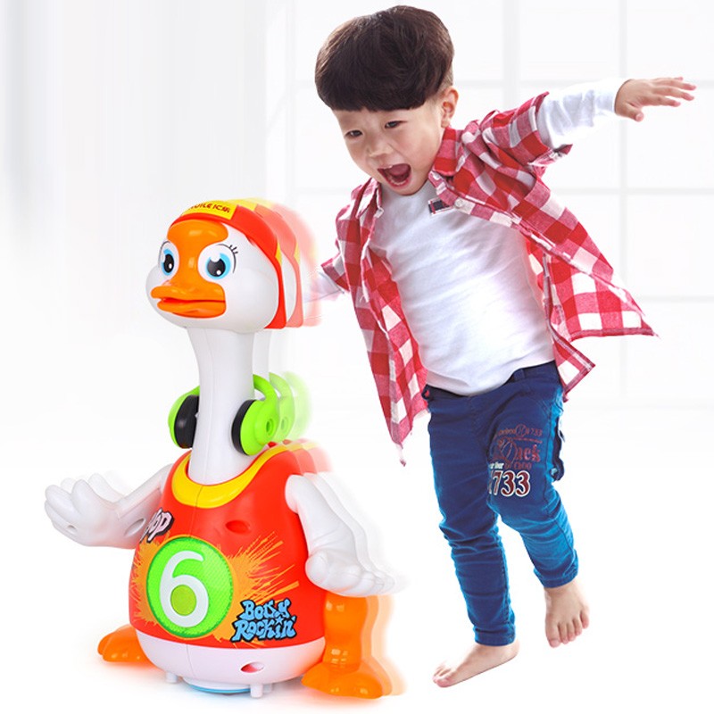 摇摆鹅在跳舞的过程中,三首音乐和内容按顺序播放。摸一摸摇摆鹅肚子或牵手,可以带着宝宝学习《三字经》、背唐诗《咏鹅》,还能唱劲爆的歌曲,讲生动的故事。遇障碍物可自主转向,宝宝不在玩的时候,摇摆鹅会自动进入休眠,节省用电。