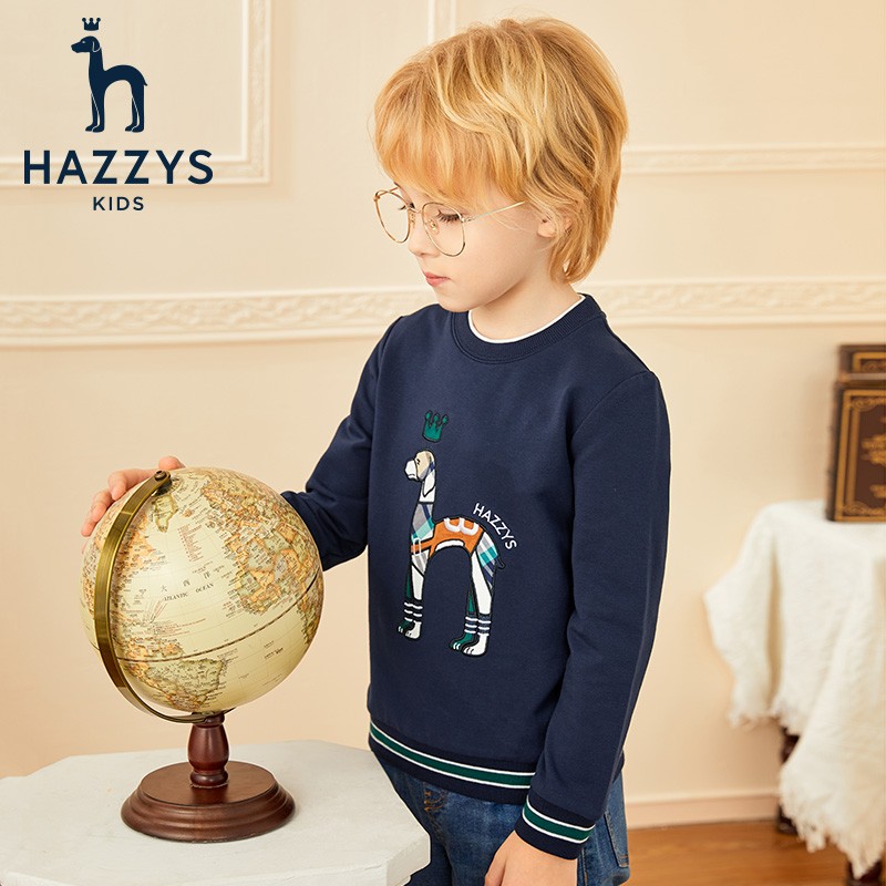 HAZZYS 哈吉斯 男童秋新品卫衣,采用舒适面料,柔软舒适,运动百搭,个性抢眼,透气性好,时尚帅气,潮流醒目,活力动感,休闲青春,居家外出,随心穿搭。