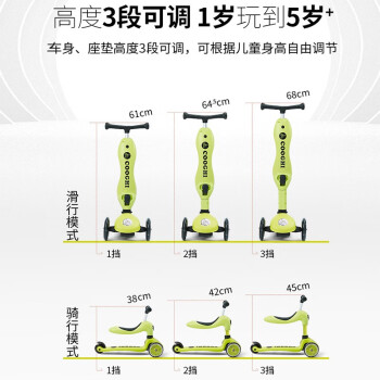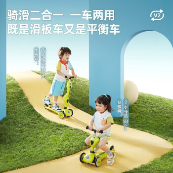 骑滑2合1,一车两用,即是滑板车,也是平衡车,可骑可滑,轻松转换,高度可调,锻炼孩子平衡力,增强孩子反应能力和促进腿部发育,培养孩子自信和勇敢的品质。