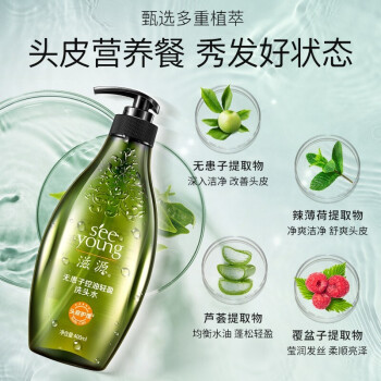 滋源是港环亚集团旗下无硅油头皮护理品牌。这款SEEYOUNG 滋源 无患子控油清爽洗头水适用于油性头皮,其中洗头水采用无硅油配方,减少对头皮的伤害。但是又添加了无患子、覆盆子和芦荟等天然植物提取物,具有温和清洁,调节水油平衡的作用,改善头皮环境。含有的多种维生素能够同时滋养头皮和头发,洗后清爽舒适但依然不算干涩。清新的花香,气味清甜不浓郁。