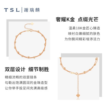 TSL 谢瑞麟 女士手链 AG520 甄选18K金细致打造双层手链,搭配饱满光彩的金珠,有着美好的祝愿,给你前行路上运气满满快乐满满。