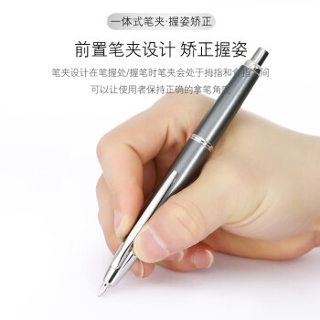 铝制笔杆,镀漆精美,按动出尖,保护笔尖,前置笔夹,矫正握姿。全黑磨砂笔杆,黑铬加工处理,磨砂质感,提高了整支钢笔的档次感。