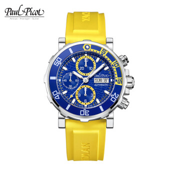 Paul Picot 柏高 冒险家系列 飞鱼王子 男士自动机械表 P1127BJS.SG.4000.2614,幽深的水下世界,虽然充满探索未知的乐趣,但若没做好充足的准备,亦有可能发生不可预测的危险。此时,一只可靠的潜水表不仅能让你明晓时间,更能帮助你顺利完成此次奇妙旅程,柏高“飞鱼王子”机械潜水表,为你潜水安全提供保障护航。腕表采用玫瑰金表壳,具有单向旋转表圈、潜水计时、夜光阅读时间的复杂功能,机芯采用ETA7750,动力储存高达42小时。腕表呈献海洋浮动的画面,表盘以波浪的花纹为装饰,镀铑指针,搭配橡胶表带,表圈由蓝宝石玻璃制成,坚固而明亮,整体令人有开阔的视觉。