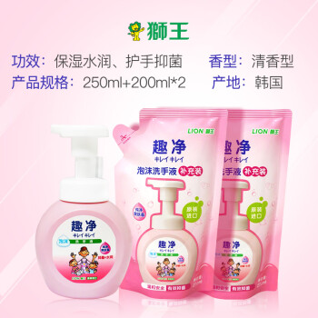 当前的位置: 首页 > 今日值得买 > 狮王(Lion)趣净抑菌泡沫洗手液水润爽肤香型250ml*1+200ml*2原装进口