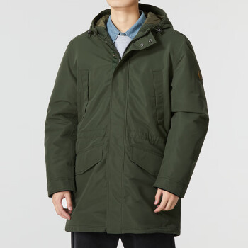 Timberland 添柏岚 男士棉服派克大衣 A4392U31,连帽可调节抽绳设计,立领拉链更具休闲感。袖臂经典圆形树标贴片,品牌识别度高。内里隐藏式拉链内侧袋,方便实用。