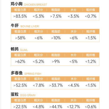海陆盛宴,鱼肉蛋禽一桶搞定,均衡配比多种营养适口性强。100%纯鲜肉,纤维饱满纹理清晰,0添加,无谷无盐配方,科学喂养助力爱宠健康成长。-40冻干技术。锁住新鲜,5倍浓缩24H真空脱水营养好味。小身材也有大营养,富含动物蛋白肉质纹理清晰可见。