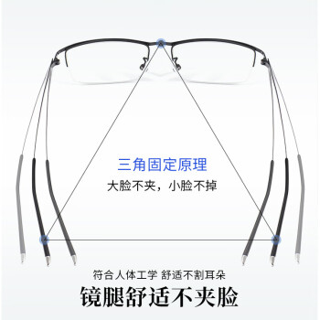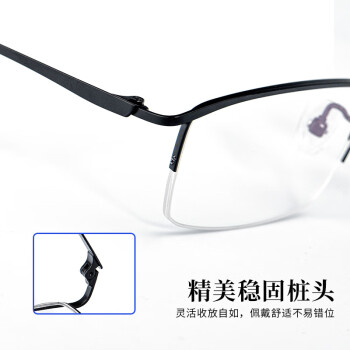 镜框柔韧有弹性,钛合金镜架,佩戴轻松自在。人性化设计,不压迫鼻梁 不压鼻,佩戴更稳更舒适舒适。镶嵌处的装饰都是加固工艺,牢固不掉落,双梁的设计,框型简单大气。
