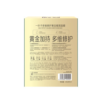 一叶子是上海韩束化妆品有限公司旗下面膜产品,于2015年1月推出,主打补水、多效、调养等系列面膜。这款one leaf 一叶子 黄金熬夜面膜,蜂窝结构360°稳锁金箔原液,透气同时以物理保温原理提升敷面膜的温热感,原液层层直达肌底吸收。规格:5片。