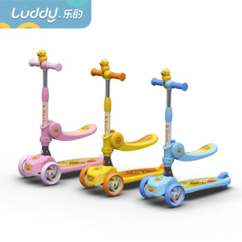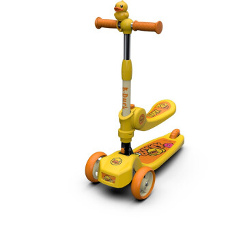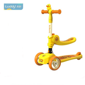 luddy 乐的 儿童小黄鸭滑板车,luddy 乐的 儿童小黄鸭滑板车,滑板车中的“小跑车”,黄鸭正版授权,内嵌式图案防滑底板,弧形工艺,结实耐用,TPR波纹,防滑舒适,轻松握住。重力转向,高弹耐磨静音PU轮,适应多种路面,脚踏后轮刹车系统,即踩即停,一键折叠,方便收纳携带。