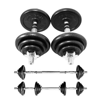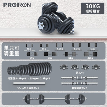 PROIRON PRKCAS15K 烤漆哑铃 15公斤kg套装,烤漆层比电镀层更厚,更均匀/更别易生锈,。采用欧盟质检标准,SGS检测高品质无异味。实心精钢枣核杆,人体工程学设计,防滑设计更安心。精度防滑锁头,防滑胶圈一次紧固。高密度纯铁,纯铁一体成型,经典永流传。