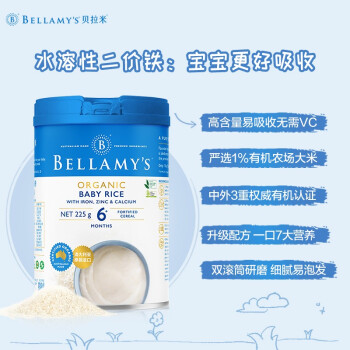 当前的位置: 首页 > 今日值得买 > 贝拉米Bellamy's 婴幼儿有机米粉 水溶性二价铁 胡萝卜菠菜味250g