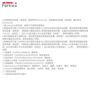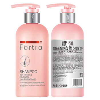 Fortro,是一家以洗发水、护发素为主营产品的个护品牌,专门针对亚洲人皮肤结构和肌理特点研发的防脱洗护产品。脱发成因复杂关键在于头皮,毛囊缺少滋养,生长周期恶化,头发休止期诞长,头皮环境不佳,环境污染、气候影响、水油失衡,所以预防脱发应从“防脱+从呵护头皮开始”,而此款保湿型逸力丰盈洗发露,采用Balancsense头皮护理技术和GrowSt发根强韧技术双管齐下,可滋养头皮并促进循环,保证营养供应充足,进而牢固发根。同时有效改善头皮环境,提高头皮抵御力以减少外界因素对头皮的损害,有效舒缓刺激,维护头皮环境的稳定,中干性头皮的人群适用。