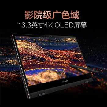 灵耀X逍遥是一款支持 360 度翻转变形的轻薄本,其最高配备了具备 4K 分辨率 OLED 屏幕,屏幕具备1000000:1 的超高对比度,100% DCI-P3 色域以及 400nit 的亮度,素质几乎是同价位笔记本的天花板水平。