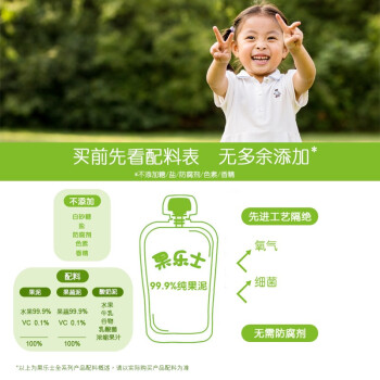 源自法国1901年的安德鲁可吸果泥,专注水果加工至今107年,品牌分布100个国家和地区。果乐士可吸果泥内含99.9%水果含量,真实水果,不添加浓缩果汁、不添加防腐剂、不加糖。采用法国科技设备,造就更健康的果泥。