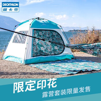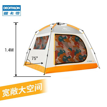 迪卡侬 8641950 野营帐篷,双门双窗:透气纱网防蚊虫,空气对流顺畅,保护隐私:门窗均搭配印花内帘,提供完善隐私保护,可抗4级风,安全牢固,不用担心帐篷稳定性问题,升级加宽外袋配合插扣设计收纳不受拉链束缚,收纳后体积小,女生也可轻松背负;面料厚实耐磨,使用寿命长。