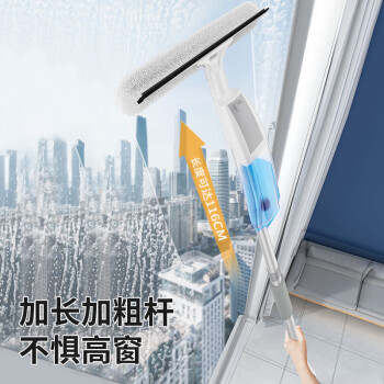 轻按板机,一键雾化喷水,更易清洁玻璃上的污渍灰尘污渍,统统不留。自带大容量水壶,高效喷水,省水又省力。优质尼龙抓绒拖布+优质柔软刮条,一擦一刮,尽享窗明几净。加长杆设计,高处清洁轻而易举。