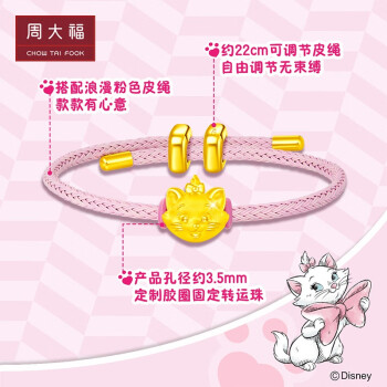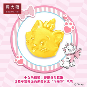 CHOW TAI FOOK 周大福 迪士尼经典系列 玛丽猫转运珠 EOR926 玛丽猫出自迪士尼经典动画电影《猫儿历险记》,自1970年出现风靡至今,头戴颈绕粉嫩蝴蝶结的猫猫,一举一动精致优雅。少女玛丽猫,即使身形稚嫩,也挡不住扑面而来的女王“玛丽苏”气质,精致发顶蝴蝶结,女王范与少女心从不冲突。“Lady first”是小小的骄傲心,可爱又迷人。