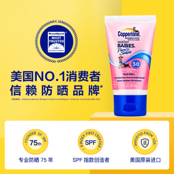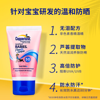 Coppertone是美国知名的专业防晒品牌。这款水宝宝防晒霜SPF指在50以上,能遮挡大部分太阳光的辐射,适合户外、海滩使用,可防止晒伤晒黑,减小皮肤癌变的几率。无刺激配方,小孩成人都可使用。特别为偏油性肤质人群设计,使用清爽,使用方法:直接涂抹于需要部位即可,下水40分钟后建议再次涂抹。