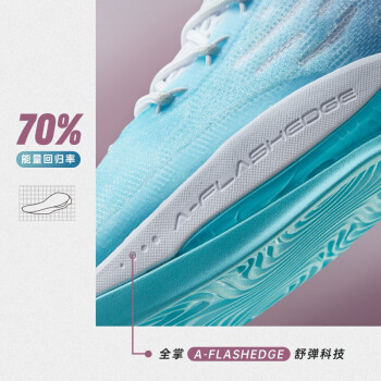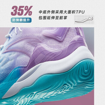 中底外侧采用大面积TPU,包围延伸至前掌,增强脚步移动时的鞋身稳定性。全掌A-FLASHEDGE舒弹科技,带来轻质回弹舒适脚感。采用高强度网纱鞋面材料,兼顾支撑与透气。采用动态绑定系统,能够动态贴合脚面,提升鞋面包裹性。大底耐磨抓地,提供持久抓地力,助力外场实战。