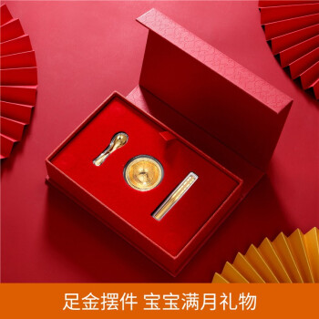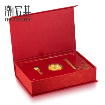 CHJ JEWELLERY 潮宏基 金碗筷勺3件套 QVG30000154 套装内含金饭碗*1+金福勺*1+金筷子*1,錾刻饱满福字的金饭碗,包含长辈的祝福与期盼,成为陪伴孩子的专属吉样物。浓浓中国风的金福汤勺,ーロー口吃下美好祝福,每天都充满小金喜。金筷子夹起好福气,好运与生俱来,满怀祝福送给宝宝。该单品均为足金打造,传递真诚祝福。