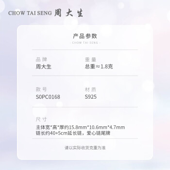 此款产品为CHOW TAI SENG 周大生 女士S925银蝴蝶结项链 S0PC0168,蝴蝶结项链女锁骨链吊坠,ins小众S925银饰首饰~佩戴舒适,不易过敏,小首饰中的翘楚。