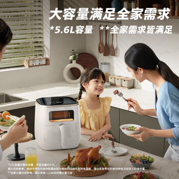 PHILIPS 飞利浦 HD9257/20 空气炸锅 5.6L 海星底盘+高速立体热风+可视窗口,食材无需翻面 可视窗口,旋风海星底盘,8大预设,1700W高功率,升温快,5.6L家庭优选大容量,可拆卸,轻松洗,360度高速立体热风包裹,拉出自动停止工作,记忆功能安全贴心。