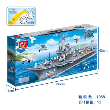 逼真的造型,多达1968块颗粒让拼装充满了乐趣和挑战性。长达一米的艇身,气势恢宏。战斗机、直升机、侦察机、救生艇一应俱全,人员各司其责,保障航母顺利起航。实物尺寸长乘宽为105.6cm*28.2cm,适合5岁以上儿童。