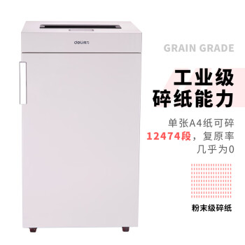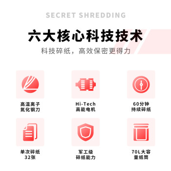 得力(deli)这款9909碎纸机,采用淬火钢刀工艺,使钢刀坚硬锋利,持久耐用不易变形。搭载得力Titan电机,碎纸速度2.2m/min,单次可碎32张A4纸。运用智能触屏设计,操作方便快捷。75L大容量纸屑桶,满足大量的碎纸需求,减少频繁倾倒。拥有智能热保护功能,电机异常过热时,机器会自动切断电源,避免电机过热。