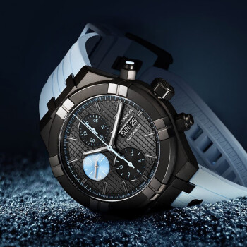 MAURICE LACROIX 艾美 男士机械腕表 AI6038-DLB01-330-4 AIKON取名与ICON同音,以成为时代新指标、新偶像为目标,也希望每个戴上AIKON腕表的人,可以尽情活出自我,这是一个属于你的时代。精巧细膩的太阳纹计时盘,在光线下流转魅力光芒,表盘点缀立体镶贴时标棱角分明、强劲有力的斜角设计能充分捕捉光线。