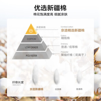 新疆长绒棉日照超3000小时,纤维长度比普通棉长1.5倍,棉花饱满度高,细腻亲肤。高支高密面料,贡缎织造工艺 如丝般顺滑,缎绸般光泽,富有弹性,精工织就五星睡感。产品采用双向60支细度精梳纱线,给足300根结合精致贡缎工艺织造,造就华丽缎感。