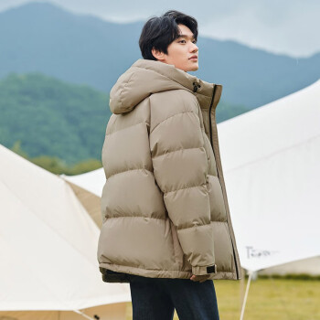 TANBOER 坦博尔 男士羽绒服 TF336353,宽松廓形,抽绳连帽,新标90鸭绒,松度17cm,绒子含量90%,x75D半光高弹丝织造而成,丰富棉感,弹性好,挺阔有型。经特殊工艺处理,布面具有抗沾湿性,有效抵御轻雾、细雨。