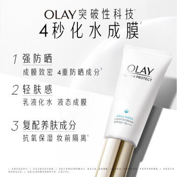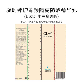 OLAY(玉兰油)是宝洁公司全球著名的护肤品牌,是中国区最大护肤品牌,由化学家格雷厄姆·武尔夫于20世纪50年代创立。目前产品涵盖PRO-X、OLAY MEN、OLAY三大系列。这款凝时臻护 菁颜防晒隔离精华乳是19年OLAY全新推出的轻盈感防晒,全新升级空气触融科技,使防晒霜体接触肌肤即快速均匀延展,带来一触即融的清爽肤感,并使得防护膜更加全面覆盖肌肤的细小褶皱和死角,全面无死角防御;全化学防晒体系配合烟酰胺、海藻糖、白茶提取物,使面部可以长时间抗氧化暗沉,防止日晒高温过度带走肌肤水份,并持续修复日晒损伤,强化健全肤质,改善光老化的伤害。