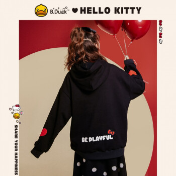 当活泼开朗的B.Duck遇见喜欢收集蝴蝶结的Kitty,可爱和少女心的大碰撞,诞生了甜甜的B. DuckX Hello Kitty联名系列,胸前Kitty和小黄鸭丝印花,上身可爱萌趣又减龄,袖上的爱心丝印,治愈坏心情,内里摇粒绒,温暖亲肤,oversized版型,舒适好穿搭。