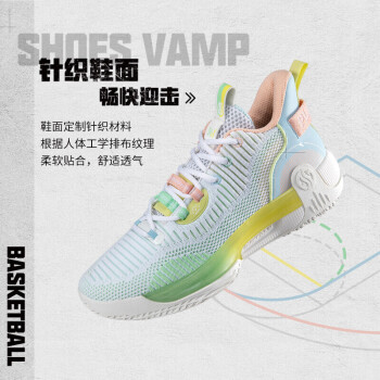 361° AG凌空MOD 572211102 男款篮球鞋,大底采用QU!KFOAM材质,柔韧轻弹,充沛缓震,助力起跳,占领制空权;鞋面定制针织材料,根据人体工学排布纹理,柔软贴合,舒适透气;可调节幅度更大,MORPHIT鞋带系统,提升包裹,增强稳定;外底大面耐磨橡胶,易磨损处额外补强纹路,提升抓地性能,启动更快速。