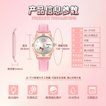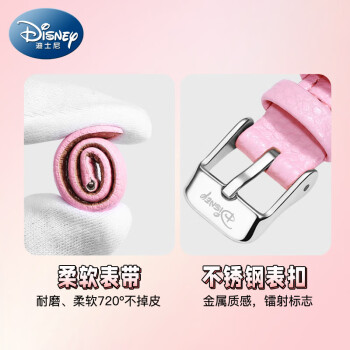 迪士尼(Disney)推出的这款29.3毫米腕表,搭载石英机芯,走时稳定。具有3ATM防水性能,满足日常防水需求。采用矿物强化表镜,耐磨损且通透性好,读时清晰。圆形表盘配有阿拉伯数字时标、镂空指针,时尚简约。