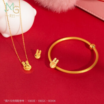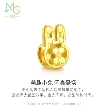 Chow Sang Sang 周生生 Charme系列 亮面兔子转运珠 93652C 采用黄金材质,5G亮镜金工艺,小兔子表面呈现六边形蜂巢切割面,营造高光镜面效果,金光闪烁,造型简约时尚。