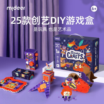 mideer 弥鹿 手工制作材料包,手工与游戏结合,是玩具也是艺术品,25款创意DIY,一盒体验3大玩法,材料充足,无需自备,独立包装更省心,25袋游戏材料包+1袋公共材料包。