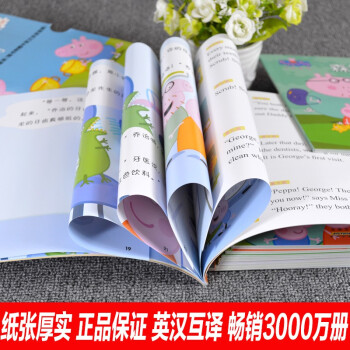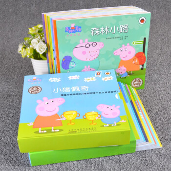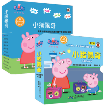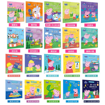 小猪佩奇动画片全球,首套图画书上市以来已销售1000万册。 本套书为小猪佩奇动画故事书第一辑+第二辑,由二十本可爱的图画书组成,书中涉及的故事都是小朋友成长过程中可能会遇到的难忘经历。本套书采用中英双语的版式,加入中英双语的故事音频,引发孩子学英语的兴趣。 小猪佩奇是一只非常可爱的小粉红猪,她与弟弟乔治、爸爸、妈妈快乐地住在一起。 小猪佩奇喜欢做的事情是玩游戏、打扮得漂漂亮亮、渡假,以及住在小泥坑里快乐地跳上跳下。 除了这些,她还喜欢到处探险,虽然有些时候会遇到一些小状况,但总可以化险为夷,而且都会带给大家意外的惊喜。