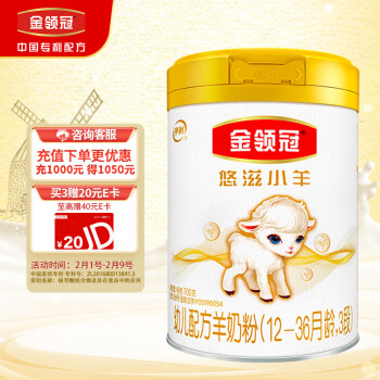 伊利是知名的国产奶粉企业,旗下的奶粉产品线比较丰富,金领冠是其人气和销量都占据前列的品牌,有珍护、塞纳牧、睿护、悠滋小羊等系列产品,这款悠滋小羊系列是金领冠首款羊奶粉产品,精心选择梵高故乡荷兰北布拉邦省的黄金牧场作为专属奶源地,莎能羊羊乳作为奶源,其脂肪球平均直径仅为2.76微米,比牛乳更细小,更容易被宝宝吸收,特别使用的乳源二代OPO亲活羊乳配方,SN-2棕榈酸酯含量高达64.4%,预防钙流失,营养好吸收,还能搭建肠胃良好微生态,宝宝肚肚更舒服,奶粉中还加入双重进口活性菌种,调节肠道健康,GOS+FOS益生元组合,可以促进益生菌的生长和繁殖,能够更好的调节益生菌在肠道当中的菌群,让消化更舒畅,此外,悠滋小羊还应用了伊利的核苷酸专利技术,助力宝宝增强抵抗力。