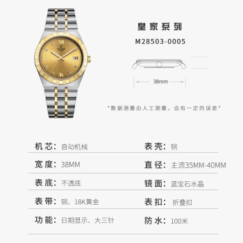 TUDOR 帝舵 皇家系列 M28503-0005 男款机械表帝舵禀承逾一个世纪的传统制表工艺,从尖端技术到时尚风格,以独一无二的手工技艺打造出一支支有生命、有灵魂的腕表。手表采用自动机械机芯,表带、表壳采用钢材质,表扣采用单折叠扣方式,商务风格,时尚休闲。