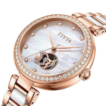 FIYTA 飞亚达 倾城系列 女士自动机械表 DLA30001.PWSD,少女不仅是单纯的幼态,她是一种玩趣的想象,似玻璃杯里的鱼儿,欣喜跳跃与指尖共舞,释放超越年龄的魔力,手腕藏着一个奇妙发光的想象时间馆,倾城系列腕表,少女总是不缺想象力,鱼型镂空嵌入点位,似少女对海洋的畅想,贝母光影交融,犹如鱼儿吐着甜腻耀眼的恋爱泡泡,表圈缀以56颗银白镶嵌,映衬少女妆容,珠宝级密镶技法,装点灵动奇想,表圈缀以56颗银白镶嵌,映衬少女妆容,珠宝级密镶技法,装点灵动奇想,精密陶瓷工艺,白金相间折射腕间光芒,贴肤舒适细腻耐磨,为金属赋予温润触感,点位镶嵌,缀以放射圆盘,错落分布,与贝母光影交相辉映,高性能自动机械机心,颜值和功能兼备,少女的时尚原则,从里到外自信到底,祥云纹标识,寓意幸福吉祥,底盖全透明,看得见的机械魅力,扣面精密抛光,精密细致,平衡手腕承重,便捷穿戴。